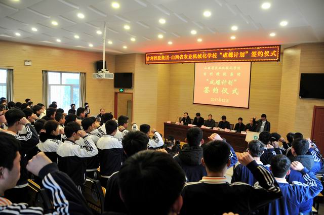 2017年12月22日,我校隆重舉行“成蝶計劃”簽約儀式,校黨委書記李晉與吉利集團人力資源部西北大區(qū)招聘經(jīng)理王一洲代表校企簽訂了校企合作協(xié)議,省農(nóng)機局人事教育處韓永英處長、李新民調(diào)研員專程出席了簽約儀式。
